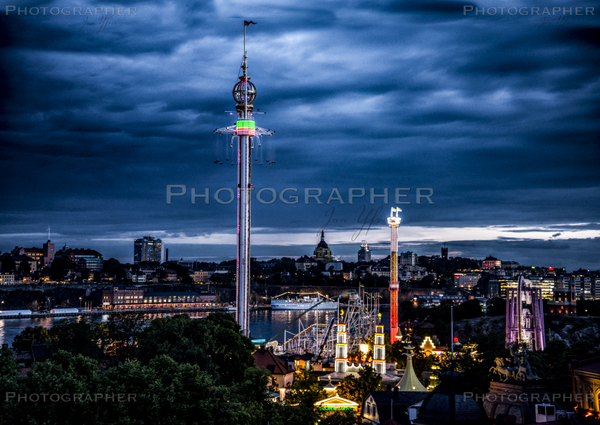 Amusement Park by Night. Gröna Lund sett från Skansen nattetid